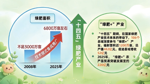 通过深化实践“绿肥+”产业机制,结合地方特色打造“绿肥+”特色农产品,绿肥体系为县域经济注入了强大的产业活力。“十四五”期间,体系带动全国106个县域深度参与到“绿肥+”粮、果、茶产业的发展中,累计辐射带动面积近1200万亩,总产值达到482亿元,“绿肥+”农产品贸易从2021年的12.5亿元,突破发展至2025年的约220亿元。这种模式有效地将生态投入转化为农户手中实实在在的增收红利,促进县域增收52亿元。