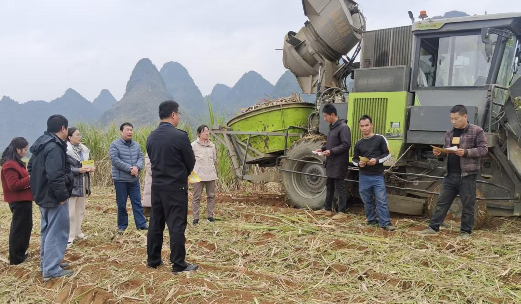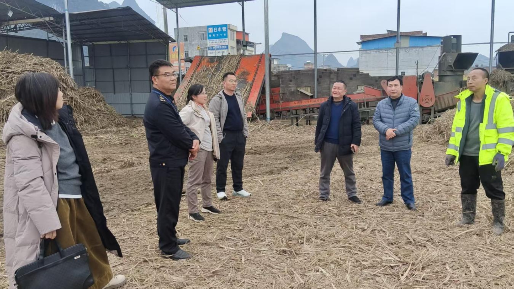 指导组在北牙万里村糖料蔗分步式机收除杂点进行安全生产督导