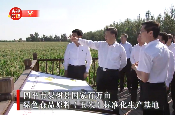 习近平总书记7月22日赴吉林考察调研。当天下午,他首先来到四平市梨树县国家百万亩绿色食品原料(玉米)标准化生产基地核心示范区、卢伟农机农民专业合作社,了解粮食生产、黑土地保护利用、农业机械化规模化经营等情况。随后,习近平参观了四平战役纪念馆,重温革命历史,缅怀革命先烈。